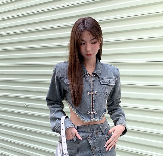 ジャケット コート 長袖 ショート丈 切り替え スリム デニム 系 原宿系ファッション 韓国風ダンス 衣装 ヒップホップ 個性 奇抜 かわいい 青文字系 アウター コート トッ