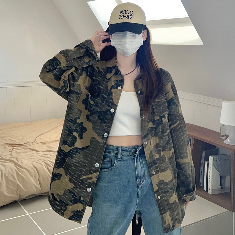 ジャケット コート 長袖 切り替え バイカラー 配色 体型カバー カモフラ 迷彩 ミリタリー ヴィンテージ風 レトロ調 ユニセックス 男女兼用 原宿系ファッション 韓国風ダンス 衣装 ヒップホップ