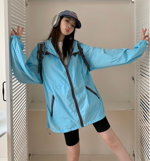 ジャケット コート 紫外線防止 日焼け止め 長袖 切り替え 体型カバー 原宿系ファッション 韓国風 ダンス 衣装 ダンサー ヒップホップ 個性 奇抜 かわいい 青文字系 アウター コート