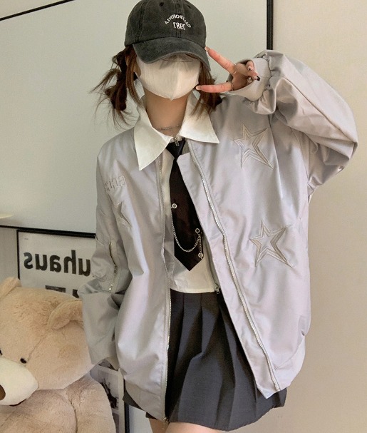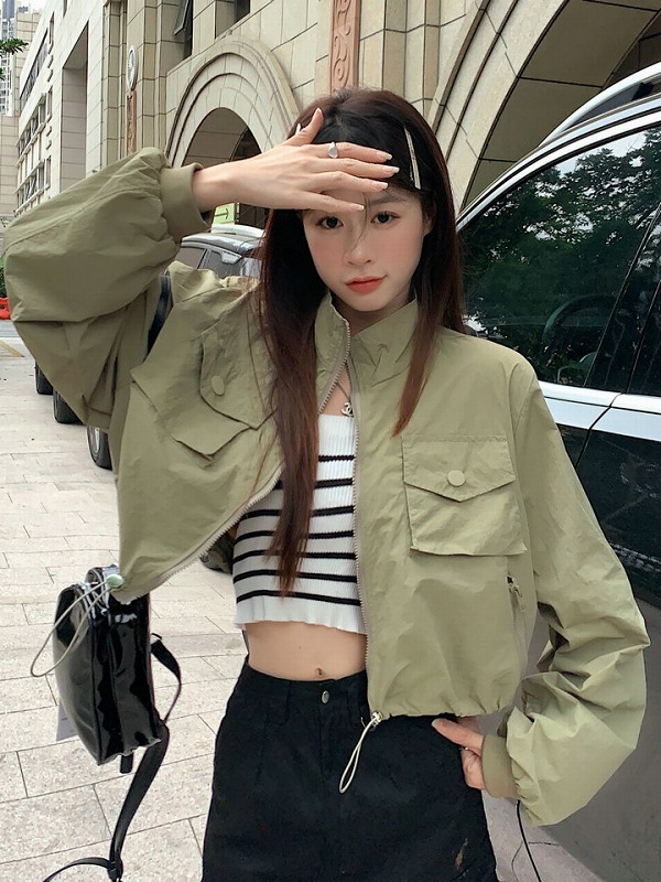 全3色 ジャケット コート 紫外線防止 日焼け止め ショート丈 薄手 長袖 体型カバー 原宿系ファッション 韓国風 ダンス 衣装 ダンサー ヒップホップ 個性 奇抜 かわいい 青文字系