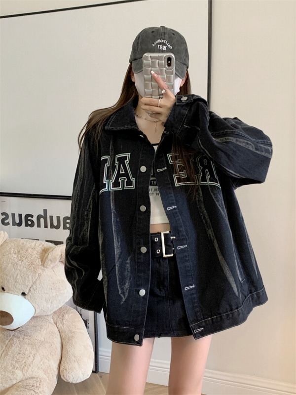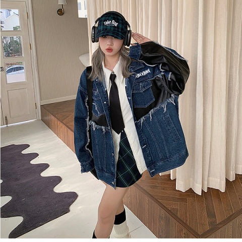 デニムジャケット ジージャン ジャン 長袖 切り替え 体型カバー デニム 原宿系ファッション 韓国風 ダンス 衣装 ダンサー ヒップホップ 個性 奇抜 かわいい 青文字系 アウター コ