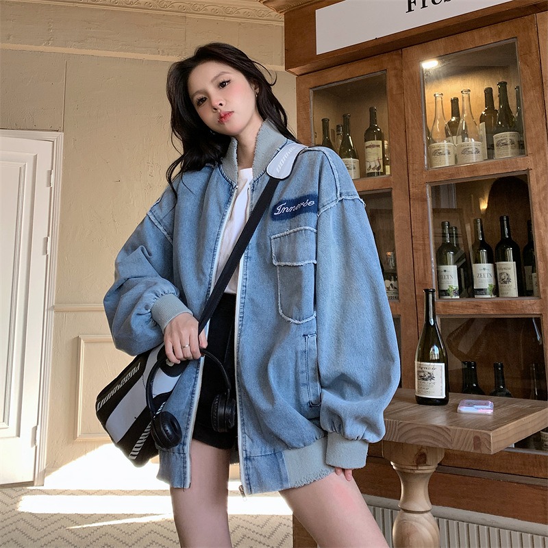 デニムジャケット ジージャン ジャン 長袖 切り替え 体型カバー デニム ヴィンテージ風 レトロ調 原宿系ファッション 韓国風 ダンス 衣装 ダンサー ヒップホップ 個性 奇抜 かわい