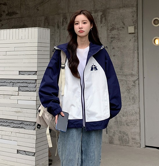 全2色 ジャケット コート 長袖 切り替え バイカラー 配色 体型カバー カレッジ風 通学 大きいサイズあり 原宿系ファッション 韓国風 ダンス 衣装 ダンサー ヒップホップ 個性 奇抜