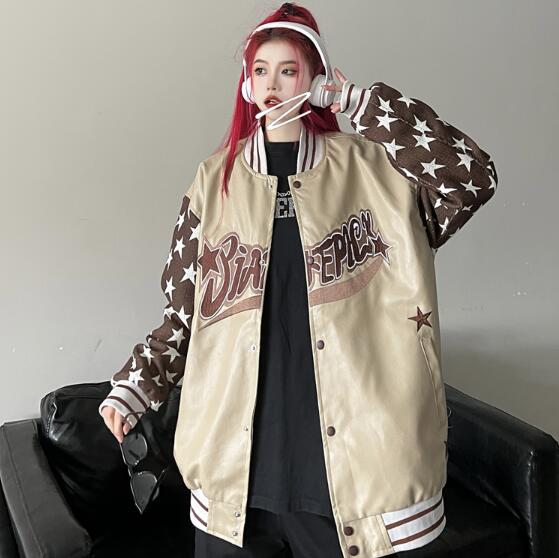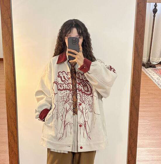♪~2展開♪ベースボールジャケットスタジャンスカジャンアウタージャケットブルゾンジャンパー天使ヒップホップ韓国おしゃれビッグゆったりストリートオーバーサイズビッグシルエットレディース