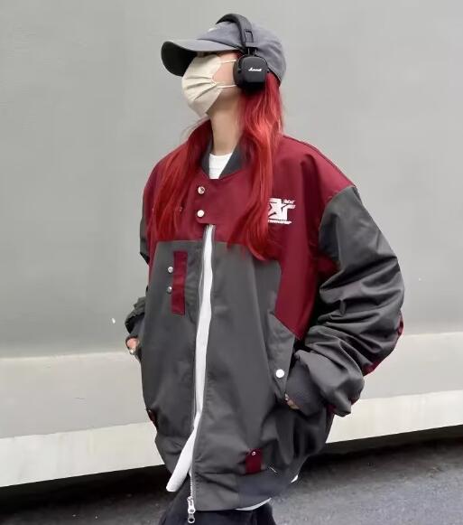 ♪M-2XL展開♪バイカラースタジャンベースボールジャケット韓国系ファッション韓国ジャケットブルゾンジャンパーレディースメンズキッズブラックレッドダンス衣装ダンス発表会文化祭イベント個性的奇抜ストリー