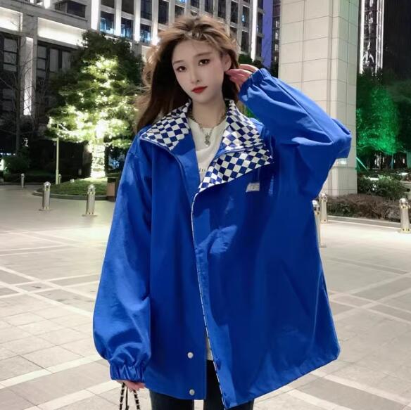 ♪~展開♪チェック柄ジャンパーアウタージャケットウインドブレーカーブラック黒ブルー長袖マウンテンパーカー大きいサイズビッグゆったりジップアップジッパーカジュアルブルゾンレディースメンズストリート