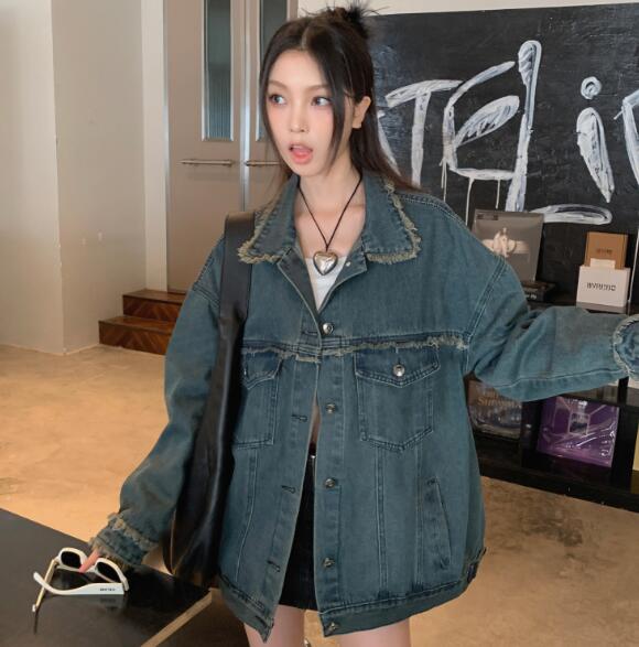 ♪~展開♪ジージャンデニムジャケット長袖ジャンダンス衣装ヒップホップレディースメンズガールズストリート奇抜派手スケーター大きいサイズビッグ韓国カジュアルおしゃれ可愛いヴィンテージ風