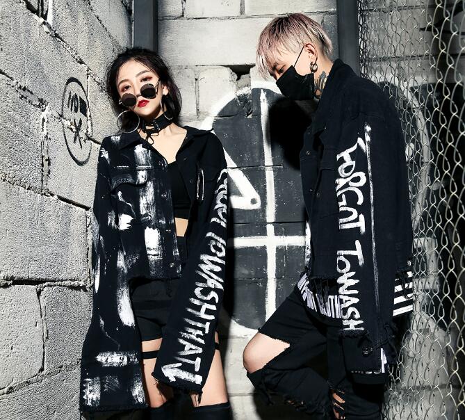 ジージャンデニムジャケットアウター長袖 ビッグシルエット ゆめかわいい 奇抜 派手 トップス ダンス衣装プリントダメージ加工 韓国ファッション 大きいサイズ 個性的 服 原宿系オーバーサイズ レディー