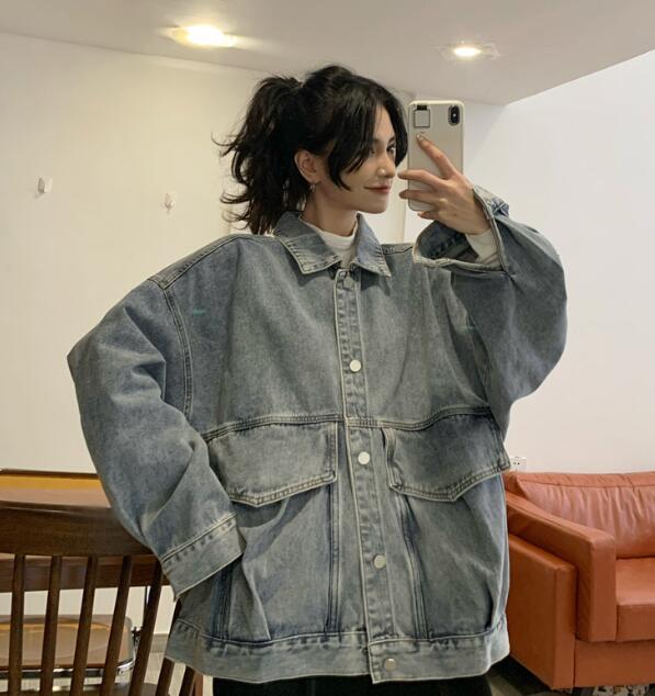 ジージャンデニムジャケットアウタービッグポケット長袖 ビッグシルエット ゆめかわいい 奇抜 派手 ダンス衣装 韓国ファッション 大きいサイズ 個性的 服 原宿系オーバーサイズ レディースメンズ ユニセ