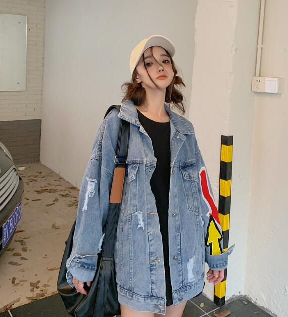 ジージャン デニムジャケットアウターワッペン長袖 ビッグシルエット ゆめかわいい 奇抜 派手 トップス ダンス衣装クラッシュダメージ加工 韓国ファッション 大きいサイズ 個性的 服 原宿系オーバーサイ