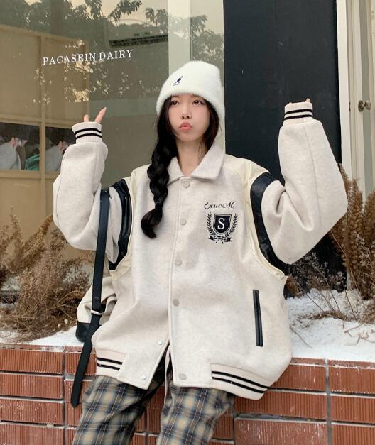 スタジャンベースボールジャケット韓国系ファッション韓国ジャケットブルゾンジャンパーレディースメンズキッズダンス衣装ダンス発表会文化祭イベント個性的奇抜ストリートアウターレトロあったか