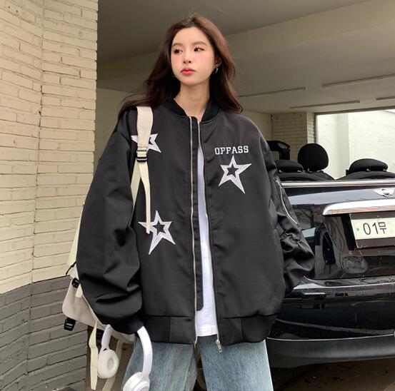 ♪-2展開♪2色アウターブルゾンジャケットジャンパー刺繍ビッグ大きいサイズヒップホップレディースメンズガールズ韓国個性的奇抜可愛い