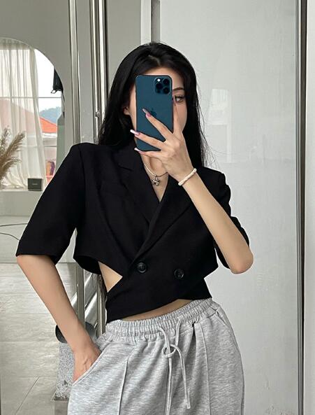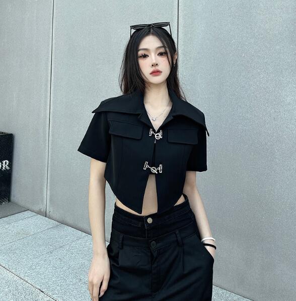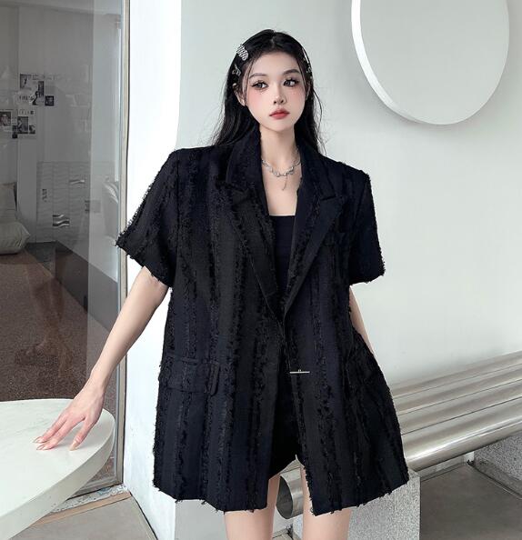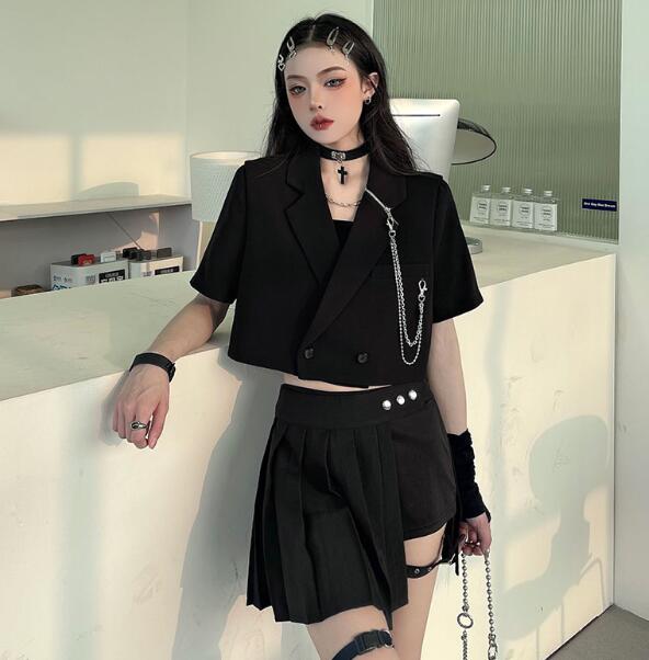 モード系チェーン半袖 ビッグシルエット ゆめかわいい 奇抜 派手 ジャケット アウター ダンス 衣装 ヒップホップ コスチューム 韓国ファッション 大きいサイズ 個性的 服 原宿系オーバーサイズ レデ