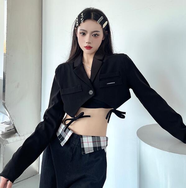モード系長袖短い短めへそ出しショート丈 ビッグシルエット ゆめかわいい 奇抜 派手 ジャケット アウター ダンス 衣装 ヒップホップ コスチューム 韓国ファッション 大きいサイズ 個性的 服 原宿系オ