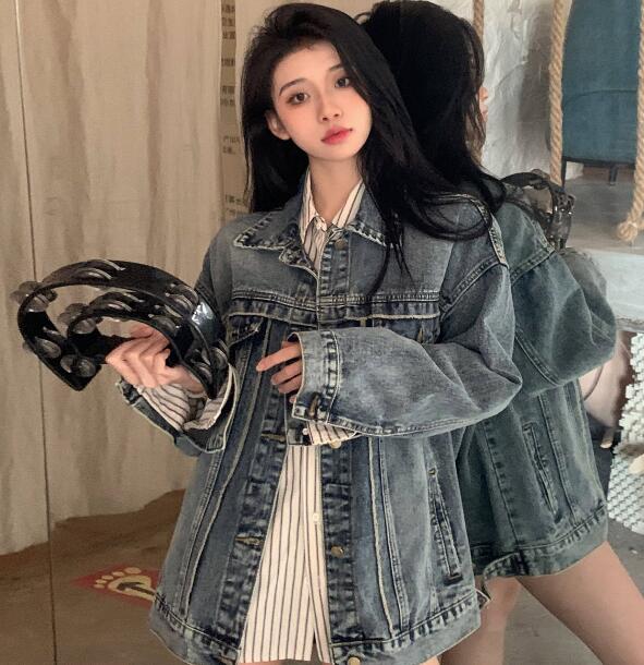 ジージャンデニムジャケットアウター長袖 ビッグシルエット ゆめかわいい 奇抜 派手 トップス ダンス衣装 韓国ファッション 大きいサイズ 個性的 服 原宿系オーバーサイズ レディースガールズ きれいめ