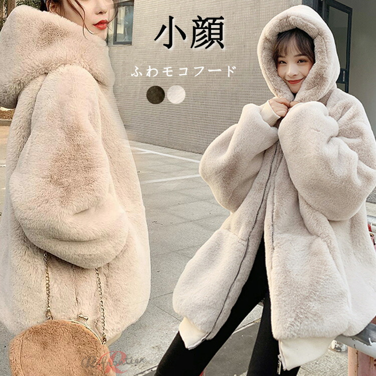 ベンチコート ジュニア ボア オフホワイト アイボリー ブラウン 白 茶 茶色 フード付き 防寒 ロゴ フリーサイズ S M L 2L 秋 冬 厚手 体型カバー 無地