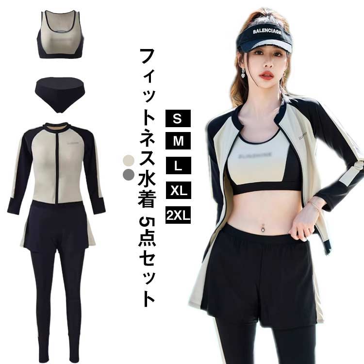水着 体型カバー レディース 長袖ラッシュガード 上下5点セット 紫外線対策 日焼け予防 プール 海