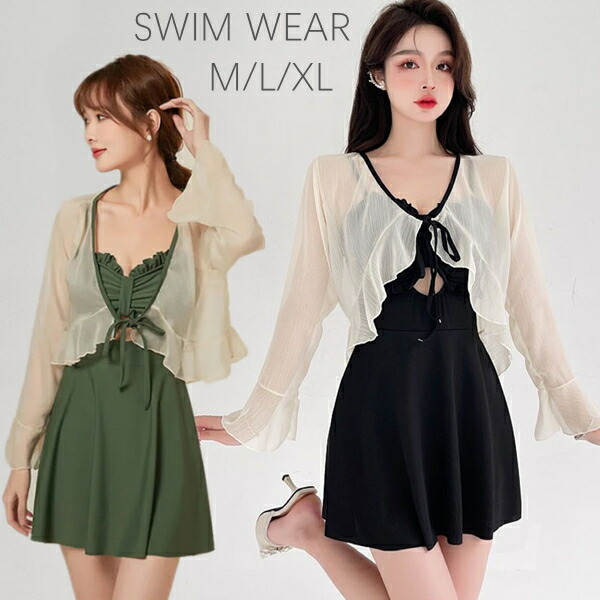 水着 レディース ボレロ 女の子 体型カバー みずぎ ノースリーブ 長袖 トップス セクシー カバーアップ スクール スカート ブラウス ビーチ バックシャン 女性向け 太もも ママ水 M L XL