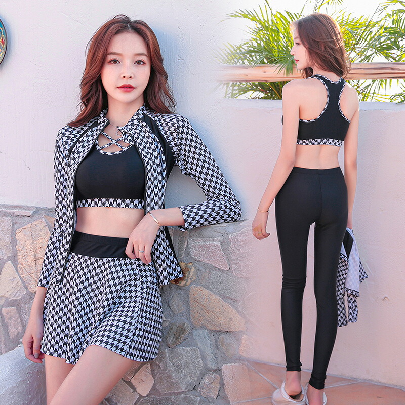水陸両用 ラッシュガードセット、UV対策 紫外線対策 ママ水着 足長効果レディースファッション 水着