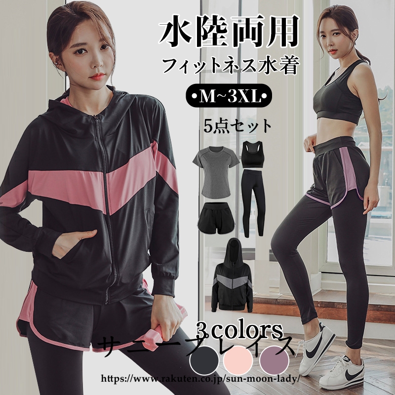 水着 レディース 体型カバー 5点セット 大きいサイズ フィットネスウェア 5点セットレディース 水着 紫外線対策