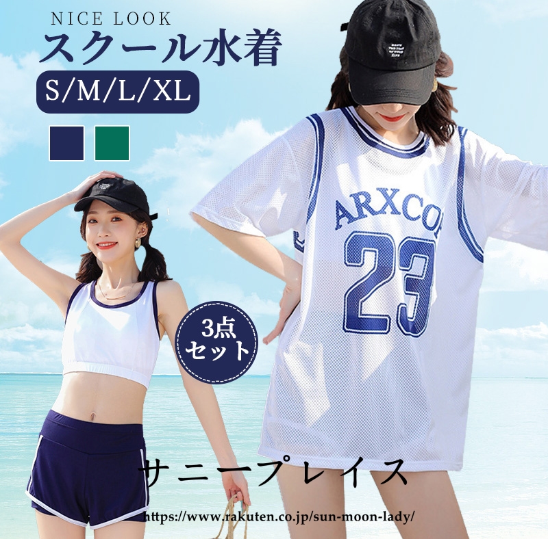 スクール水着 中学生 パッド付き ショートパンツ ラッシュガード 3点セット 体型カバー 通気性 伸縮性 快適 日焼け肌荒れ対策 高校生 学生 プール 女の子 海 レディース レディース -