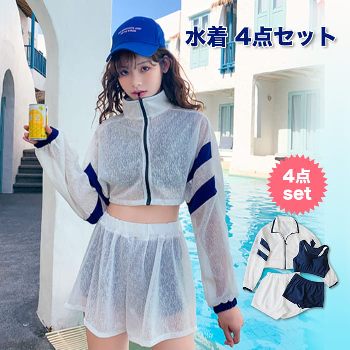 水着 レディース ビキニ ラッシュガード ショートパンツ 上下4点セット カット タンキニ アウター 可愛い パット入り 体型カバー 海 プール 新作