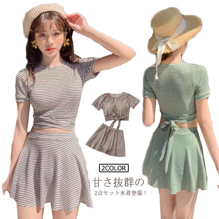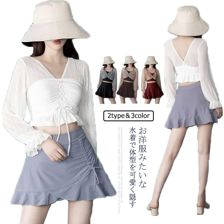露出控えめ 水着 レディース 体型カバー水着 ビキニ スカート ダンス 20代 30代 40代 スウェット オトナ女子 無地 バックシャン