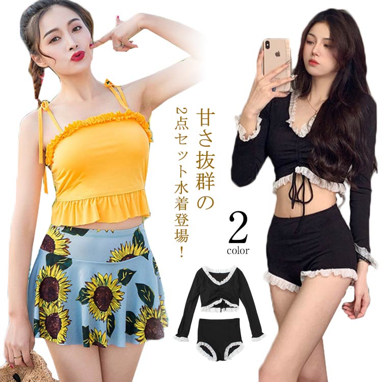 2点セット 水着 レディース 水着 ビキニ フリルビキニ S M L スポーツ セクシー ビーチ リゾート ママ 水着 体型カバー 女の子 フレア水着 ダンス 運動