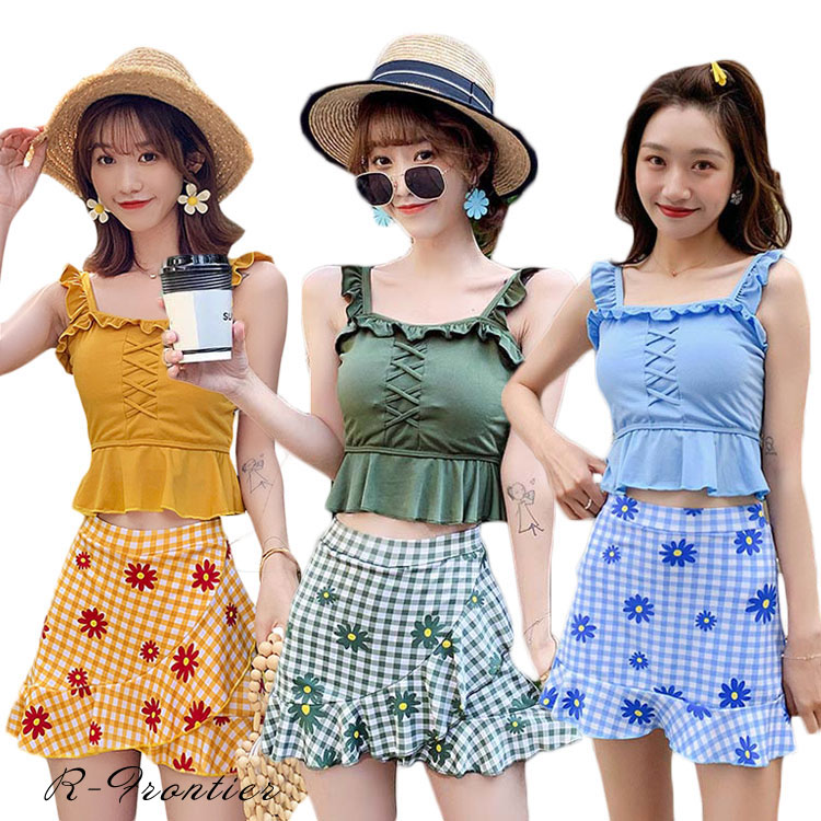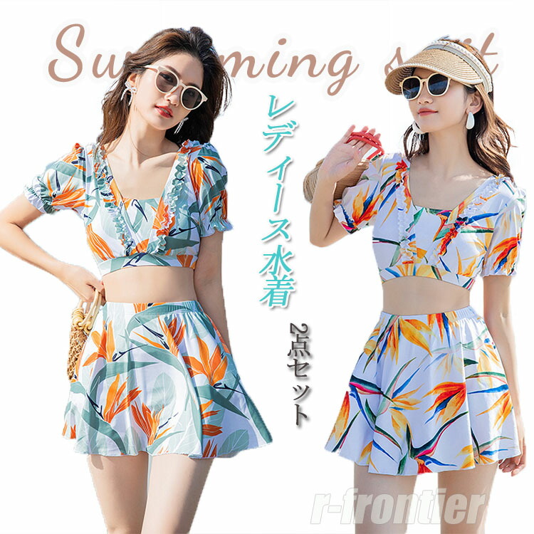 高校生 水着 レディース 体型カバー ビキニ 水着 レディース セパレート ママ水着 露出控えめ 水着 2点セット かわいい