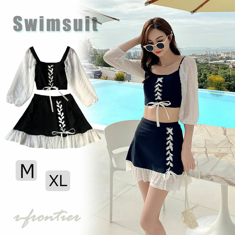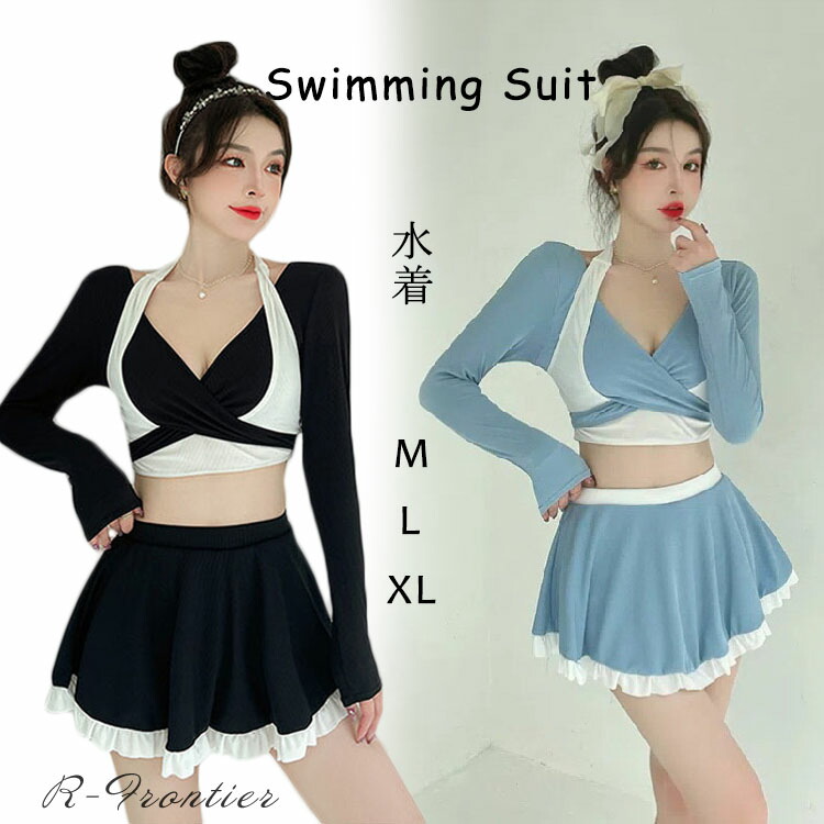 水着 韓国 高校生 可愛い レディース ラッシュガード 中学生 体型カバー ビキニ セパレート ママ水着 露出控えめ 水着 かわいい 盛れる