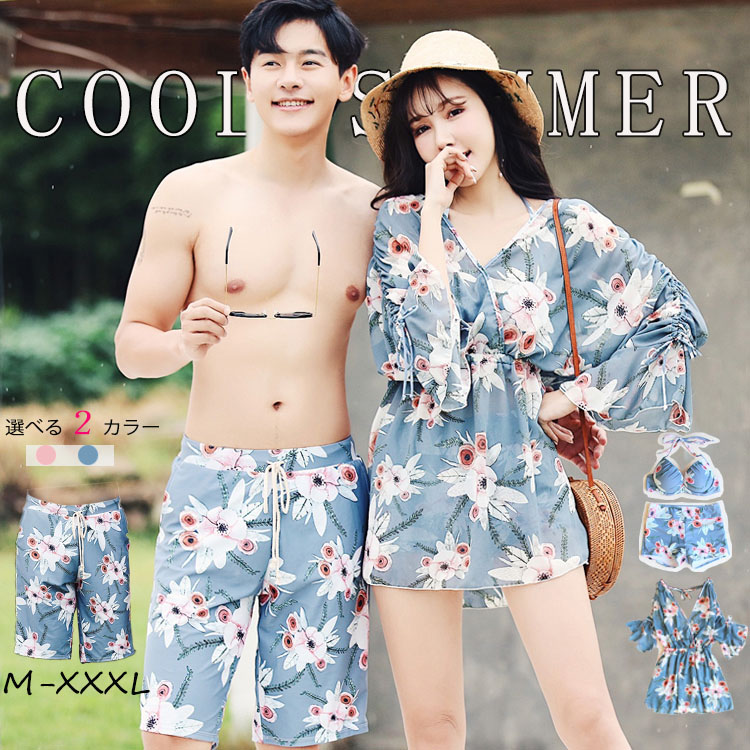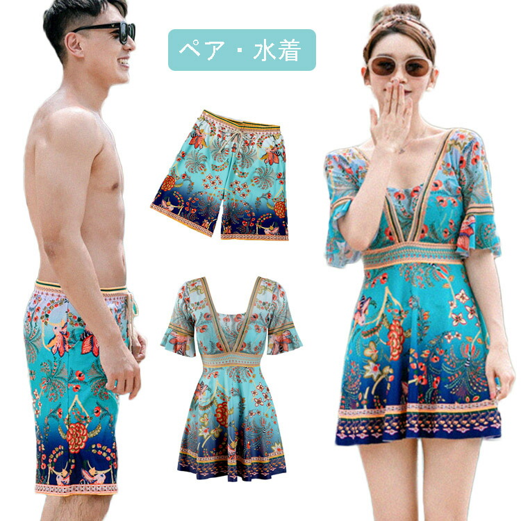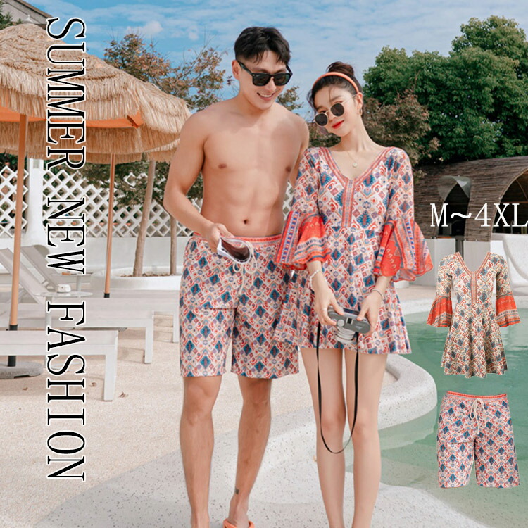 カップル 水着 ペア水着 夏 海 メンズ ビーチ パンツ レディース水着 プール 2点セット ポへミア 旅行 実用的 旅行
