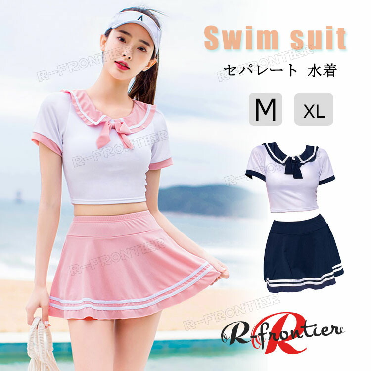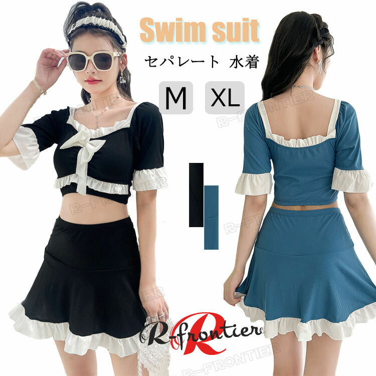 水着 高校生 上下2点セット 露出控えめ 可愛い 水着 リボン飾り スカートレディースファッション 水着