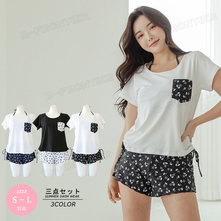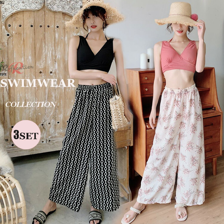 水着 高校生 ビキニ 水着 3点セット 可愛い 水着 レディース 韓国 レディース 水着 体型カバー カジュアル ハワイアン かわいい おしゃれ 短パン ショーパン ロングパンツ ワイドルーズ