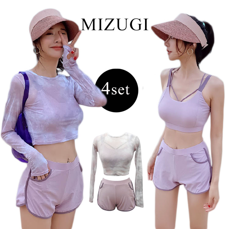 水着 体型カバー レディース タンキニ 4点セット 可愛い 高校生 セパレー 韓国 ラッシュガード ビキニ 水着 レディース セパレート ママ水着 露出控えめ 水着 かわいい