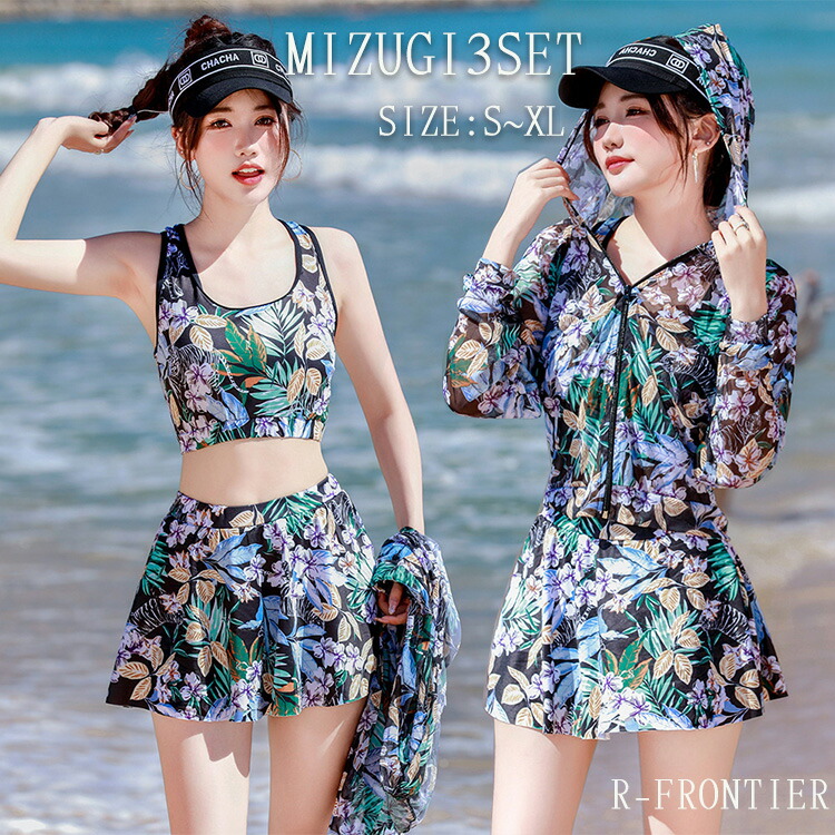 水着 体型カバー 可愛い 高校生 セパレー 3点セット レディース 韓国 ラッシュガード ビキニ 水着 レディース セパレート ママ水着 露出控えめ 水着 かわいい