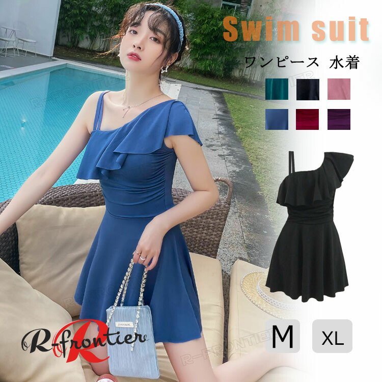 水着 高校生 韓国 高校生 水着 レディース 胸パッド付き 体型カバー オールインワン 露出控えめ 無地
