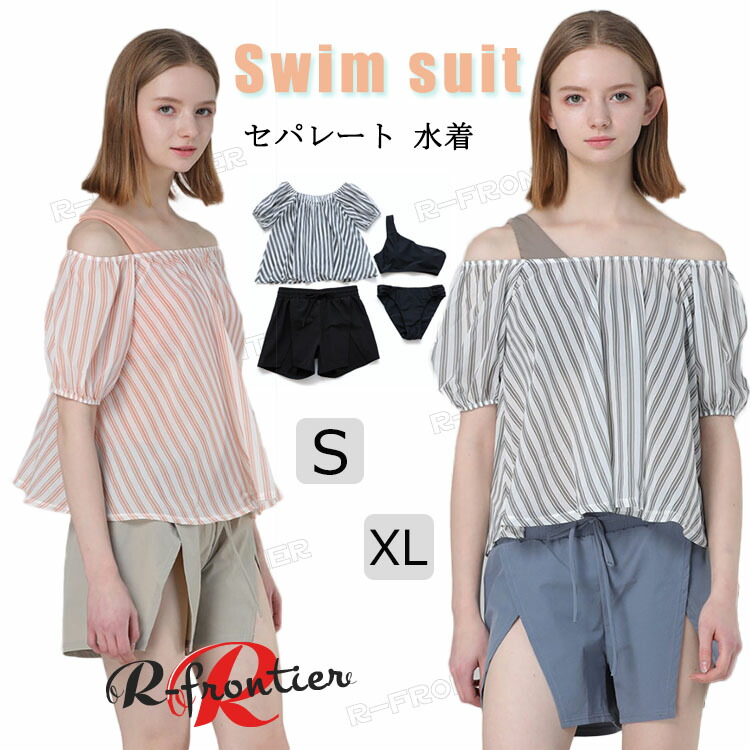 水着 レディース 水着セット セパレート 水着 4点セット 体型カバー 露出控えめ 縞柄レディースファッション 水着