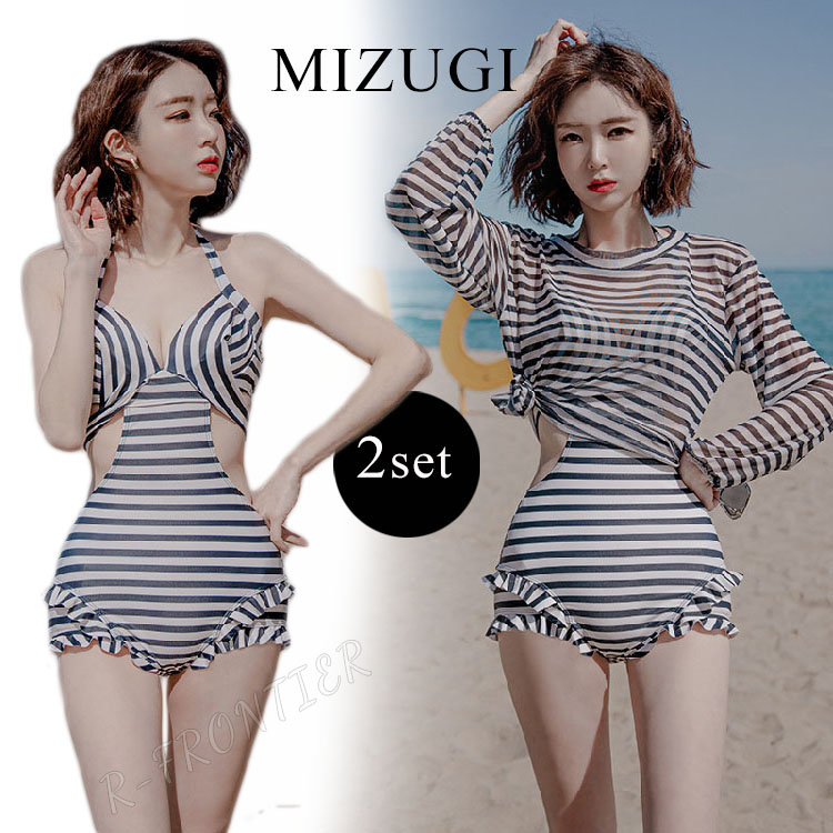水着 体型カバー 可愛い 高校生 セパレー 2点セット レディース 韓国 ラッシュガード ビキニ 縞柄 水着 レディース ママ水着 露出控えめ 水着 かわいい