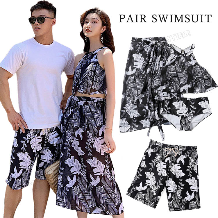 ペア カップル 水着 ビキニ レディース パレオ付き 2点セット カップル 夫婦 韓国 ペアルック セットアップ 体型カバー ハーフパンツ セクシー 大人 レディース スポーツ水着