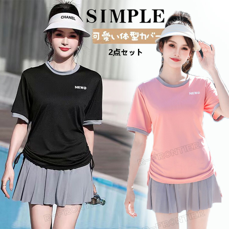 水着 レディース 水着セット 10代 30代 40代 体型カバー フィットネス水着 ママ水着 スイムウェア 2点セット おしゃれ かわいい シンプル ビーチウェア