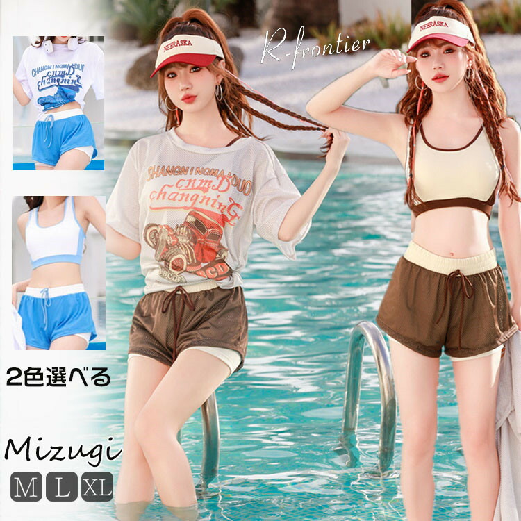 水着 レディース 水着セット 10代 30代 40代 体型カバー フィットネス水着 ママ水着 スイムウェア 3点セット おしゃれ かわいい シンプル ビーチウェア