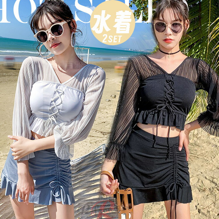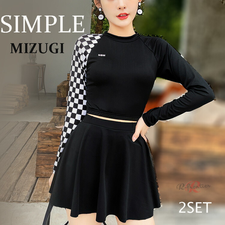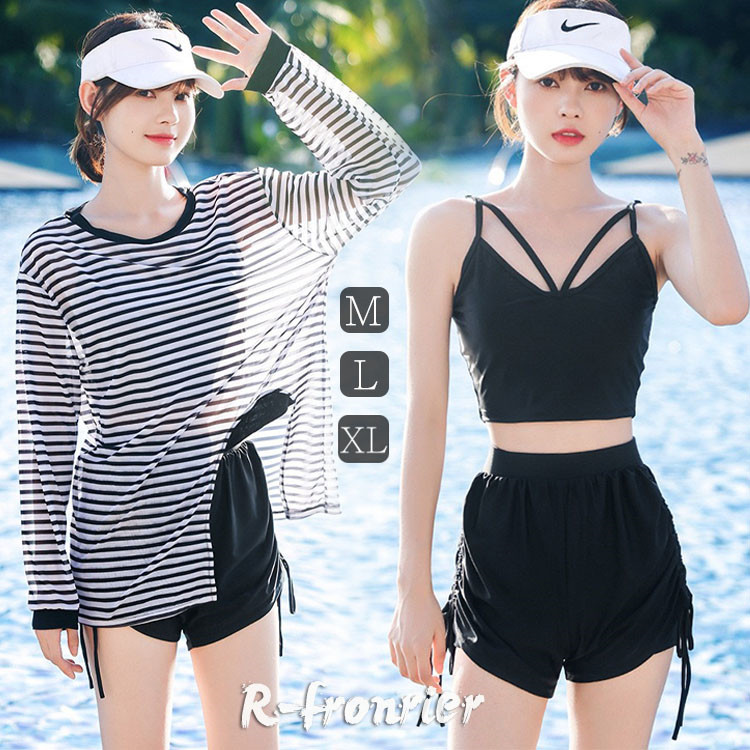 水着 韓国 高校生 水着セット 10代 30代 40代 体型カバー フィットネス水着 ママ水着 スイムウェア 2点セット おしゃれ かわいい シンプル ビーチウェア 長袖シャツ ラッシュガード