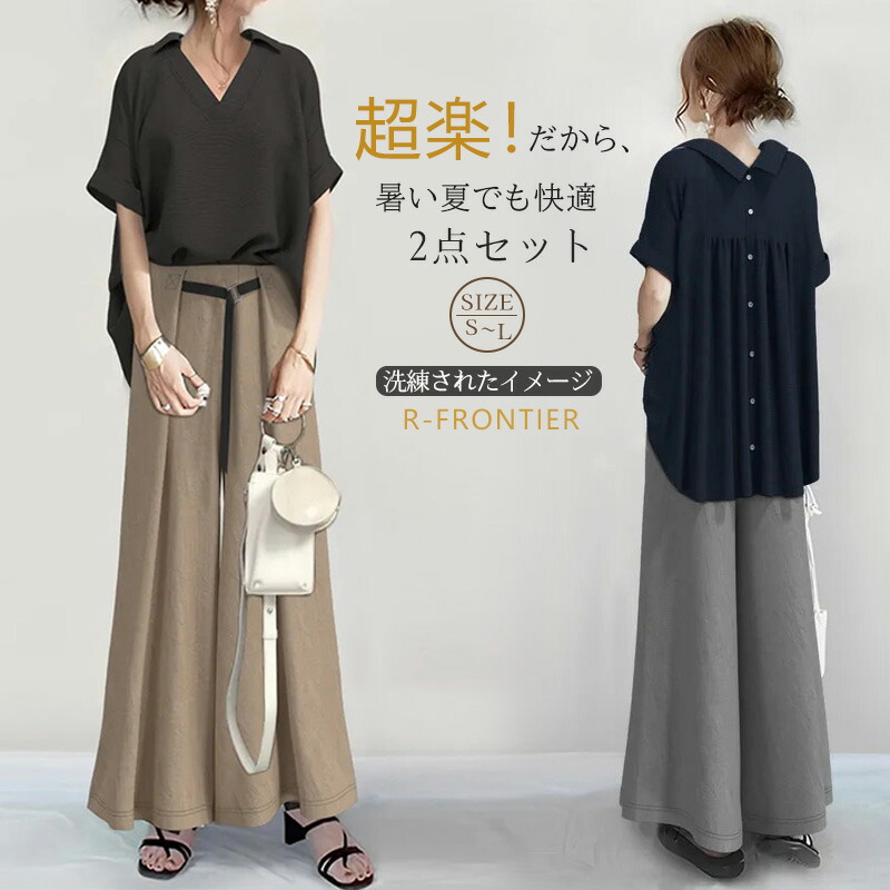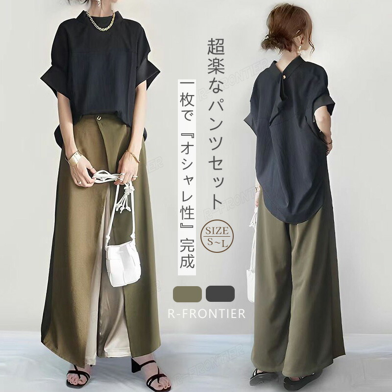 パンツセット ママ レディース 大きいサイズ きれいめ パンツセット ラップパンツ ootd 夏コーデ 服装 母 ママ 40代 30代 ウォッシャブル きれいめ ファッション