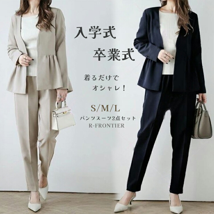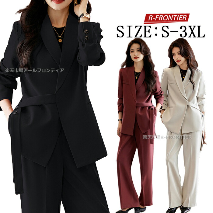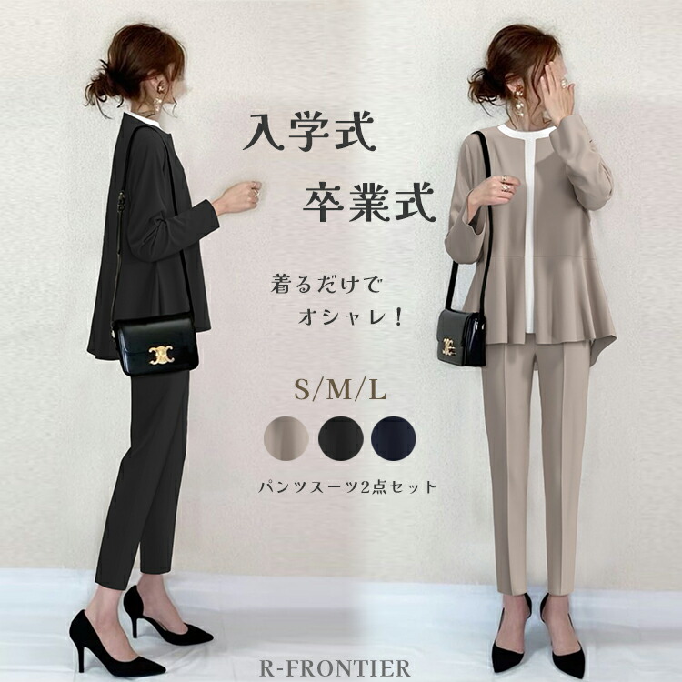 パンツスーツ レディース 2点セット 選べる3色 S M L 母レディースファッション スーツ セットアップ パンツスーツ