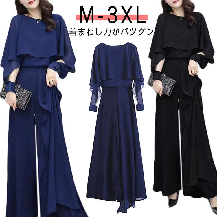 パンツスーツ セットアップ レディース パンツドレス 2点セット ワイドパンツ パーティードレス ロング パンツ ブラウス シャツ フォーマル 春 夏 秋 冬 長袖 大きいサイズ ママ スーツ オフィ