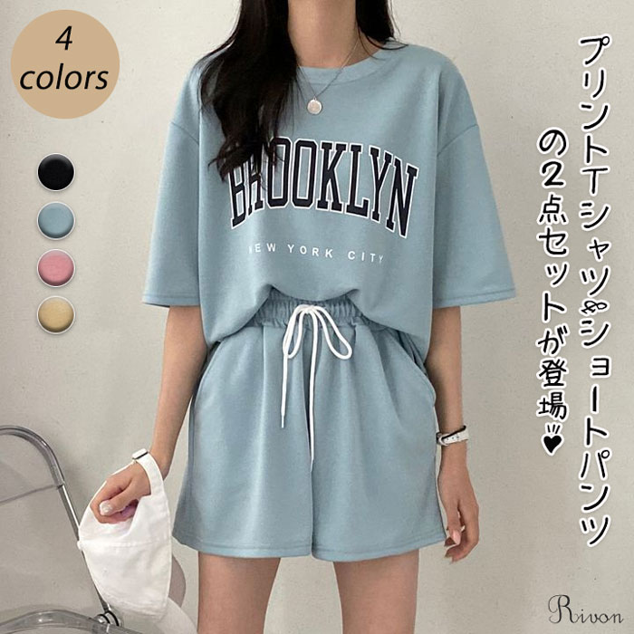 カジュアルな日常着として活躍してくれる便利アイテム プリントTシャツ&ショートパンツの2点セットが登場♪