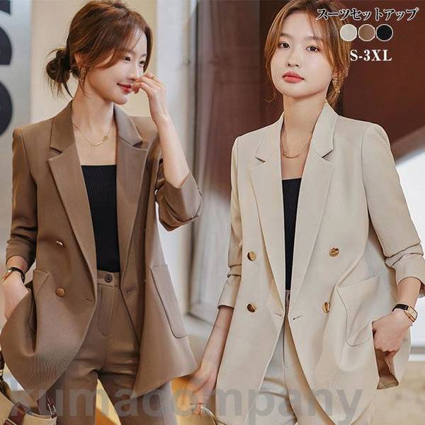 オールシーズン レディース フォーマルスーツ オフィス OL カジュアルスーツ ゆったり 20代 30代 40代 セレモニースーツ 可愛い 女性服 気質 スーツジャケット 2点セット