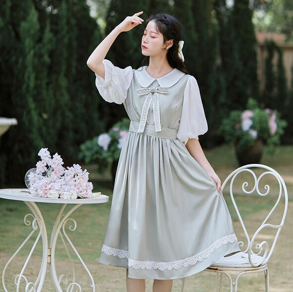 シアースリーブ ドッキングシャツ ボウタイシャツブラウス