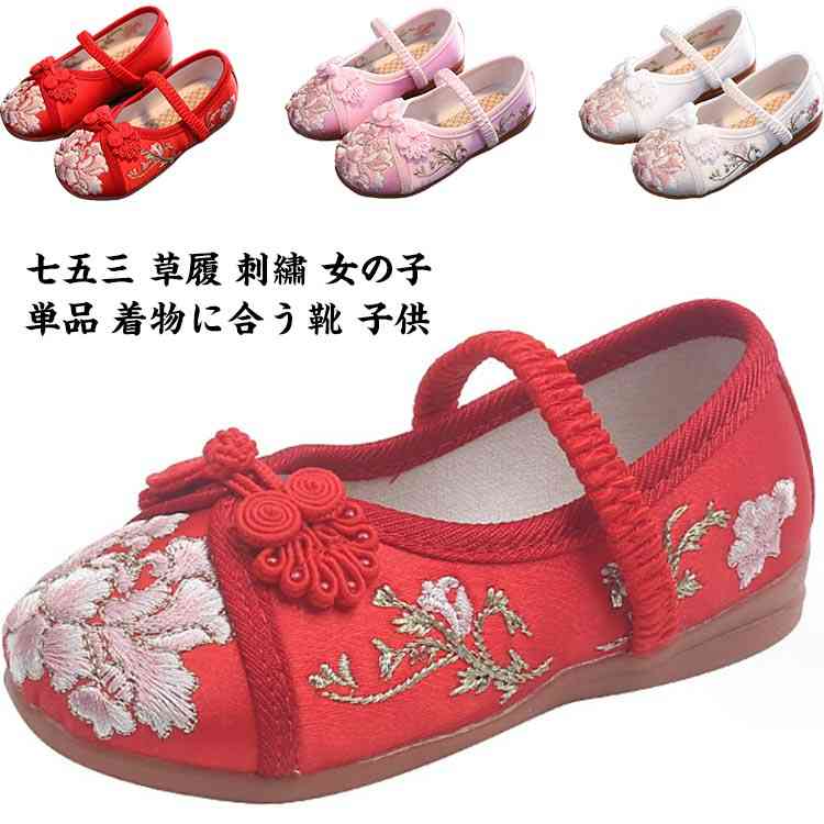 七五三 靴 草履 靴 花柄 刺繍 赤 ピンク 子供靴 歩きやすいキッズ ベビー マタニティ キッズファッション 和服 履物