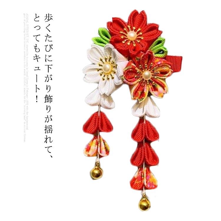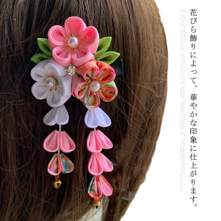 髪飾り 浴衣 ちりめん ビラかんざし 卒業式 卒園式 花盛り 桜 鈴 藤下がり ヘッドドレス ウェディング パッチン留め 和装 成人式 結婚式 花 袴 七五三 着物 女の子 キッズ 母の日